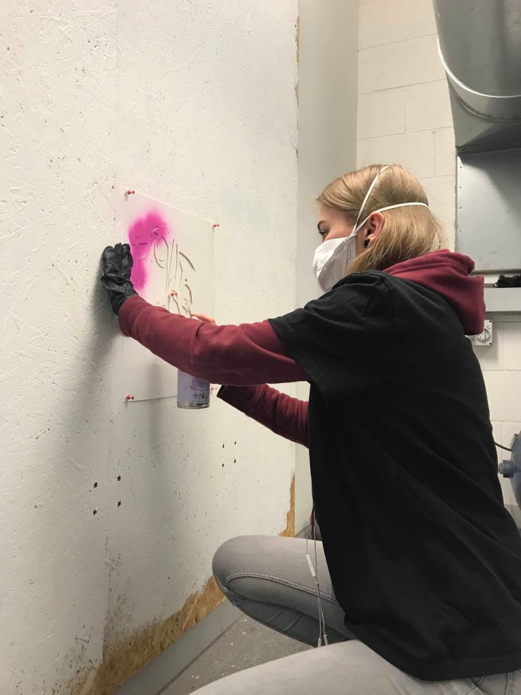 I’m not very good at spray painting and I’ve always been keen to learn and get good, so this session was excellent for me as it’s another skill on the bucket list I’m now developing. I definitely feel I’m getting more confidence in myself as a designer and an artist, I’m also forcing myself to try new things and generally feel like I’m becoming a well rounded designer with lots of useful skills!