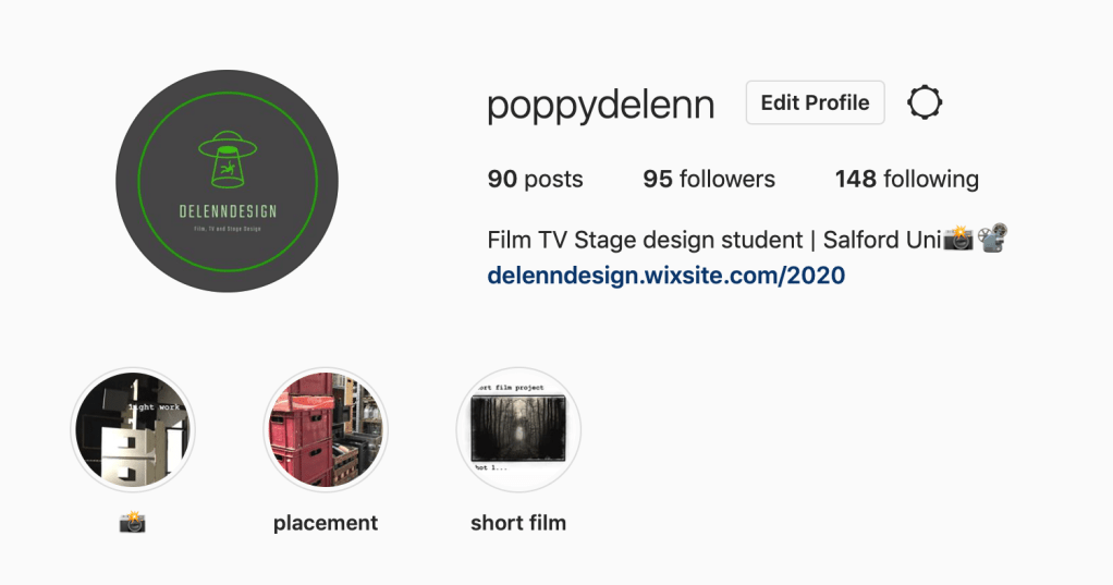 This project I have tried to focus on keeping my social media up to date, over the past couple of months my instagram has been a bit baron as I haven’t been doing much practical work. I’ve been working on adding to my Instagram highlights, adding frame by frame shot of my storyboard for Short Film Project. I’ve added my logo to my art account and also a link to my website. My website also has my wordpress blog implanted into it and all are linked together so everything feels a bit more slick this year. I plan to keep working on my social media because there is still a lot I could do and add to it, and also it is important to stay active, especially on instagram, to engage with my followers and gain popularity.